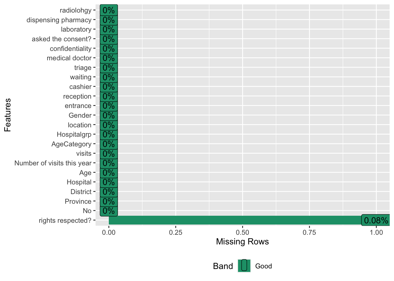 The second step is to check data quality. Here, I evaluated the percent of missingness for each variable.
